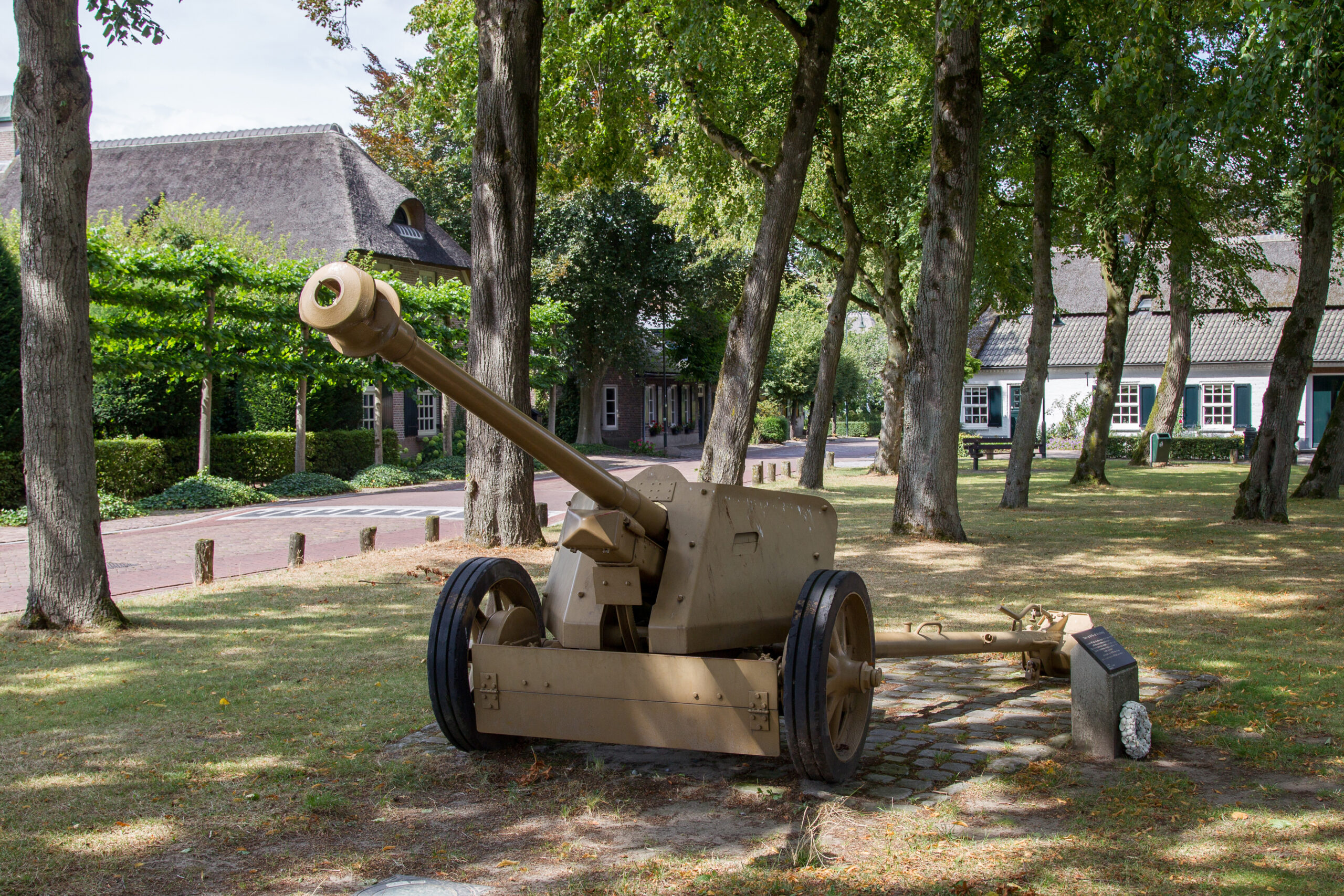 Het monumentale ‘Kanon van Zandoerle’ op het marktveld springt onmiddellijk in het oog. Dit type antitankgeschut is tijdens de Tweede Wereldoorlog vanaf eind 1941 door de Duitsers ingezet. De carrosserie is geheel van staal wat het kanon weliswaar heel solide maakt, maar ook moeilijk verplaatsbaar. Wellicht is dat de reden dat vluchtende Duitse soldaten het in september 1944 in Wintelre achterlaten.